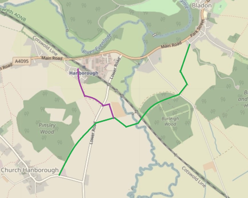 Hanboroughs.The green route was for stone from Bladon stone pits to